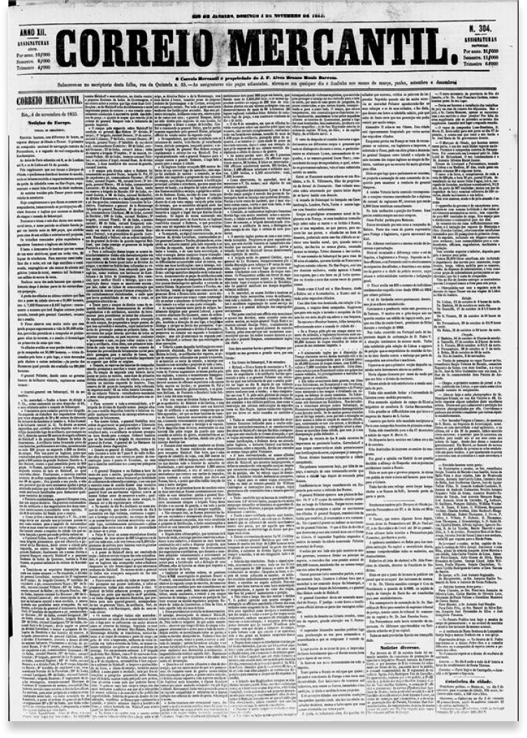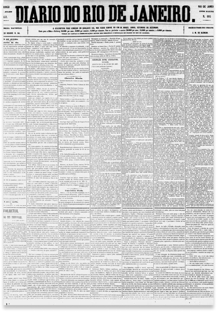 Para acessar edições posteriores a 2001 do DOU, acesse o site da Imprensa Nacional. O Jornal do Comercio, que circulou de 15/08/1841 a 31/08/1846 e de 01/01/1855 a 30/09/1862, não está disponível devido aos direitos autorais.